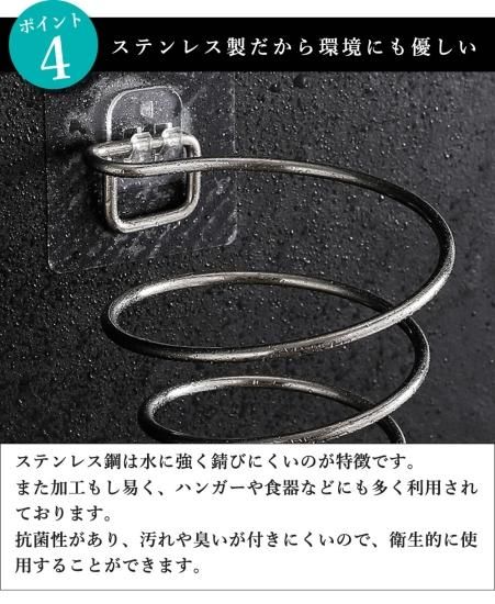 KUENTAIからステンレス製のドライヤーホルダーが登場! シンプルモダンなつくりで、無駄な機能を一切なくし、とにかくシンプルに仕上げました。 固定時には穴をあけない、強力シールにより鏡やガラスなどに簡単に接着可能です。 耐荷重量1.5キロまで可能ですので、重たいドライヤーも問題なく収納できます。 また水回りに置く事が想定されているので、錆びにくいステンレスは半永久的にお使いいただけます。 接着シールにマグネットを貼ることで、別の用途にも使用可能なので、冷蔵庫や玄関先などあらゆる場所にお使いいただけます。 |
